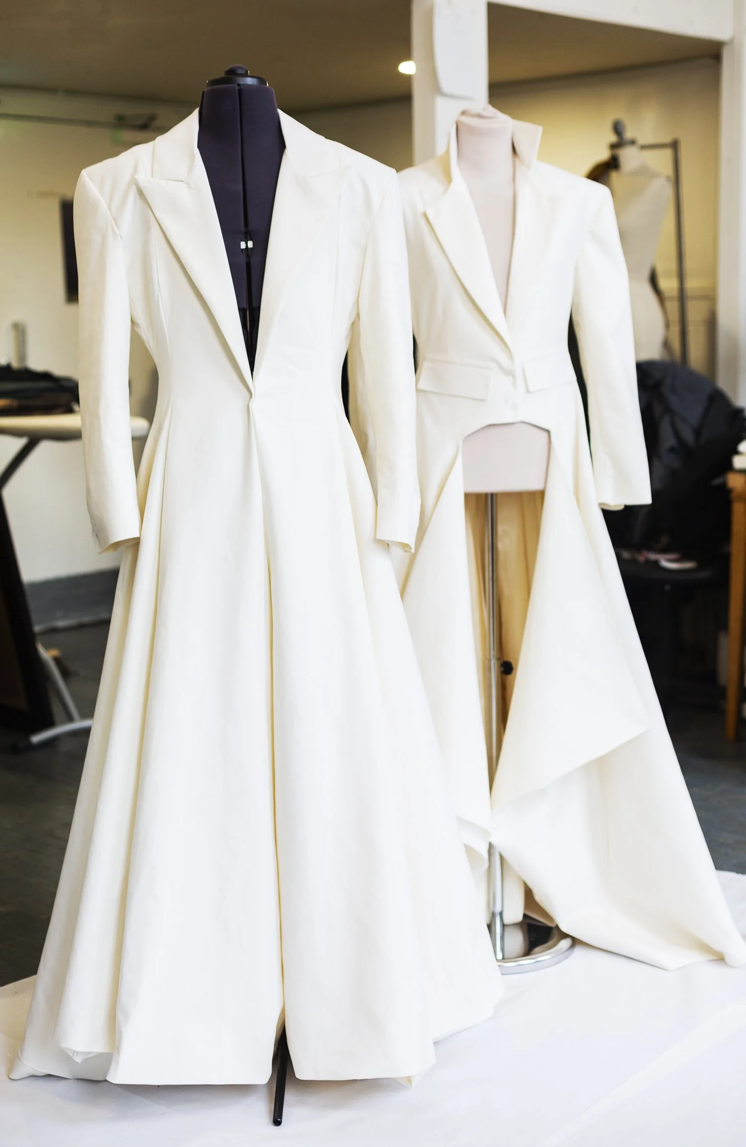 These two looks represent the culmination of thoughtful design, expert craftsmanship, and a passion for creating pieces that are truly one of a kind. Each bespoke piece was meticulously designed and handmade with precision and care, from initial sketches to the final stitches.